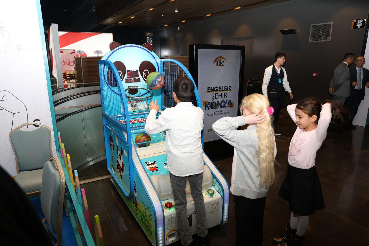 Program öncesinde Konya Büyükşehir Belediyesi tarafından fuaye alanına kurulan; karaoke etkinliği, basketbol oyunu, işaretin sesi oyunu, dokun tahmin et oyunu, dokunsal sayı eşleştirme gibi oyun alanlarında özel bireyler kendileri için hazırlanan akşamın keyfini çıkardı.